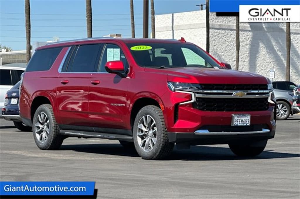 Giant Chevrolet is proud to offer this 2023 Chevrolet Suburban LS Radiant Red Tintcoat. EcoTec3 5.3L V8 60 pt Inspection, Low Miles, Extra Clean!, 3rd Row Seat / 7 Passenger / Third Row, One Owner, 4x4 / AWD/ Four Wheel Drive, Recent Oil Change, Well equipped with 1st & 2nd Row Color-Keyed Carpeted Floor Mats, Well equipped with 3.23 Rear Axle Ratio, Well equipped with 3rd row seats: split-bench, Well equipped with 4-Wheel Disc Brakes, Well equipped with 6 Speakers, Well equipped with ABS brakes, Well equipped with Air Conditioning, Well equipped with Alloy wheels, Well equipped with AM/FM radio: SiriusXM with 360L, Well equipped with Apple CarPlay/Android Auto, Well equipped with Auto High-beam Headlights, Well equipped with Automatic temperature control, Well equipped with Brake assist, Well equipped with Bumpers: body-color, Well equipped with Color-Keyed Carpeting Floor Covering, Well equipped with Compass, Well equipped with Delay-off headlights, Well equipped with Driver & Front Outboard Passenger Airbags, Well equipped with Driver Alert Package, Well equipped with Driver door bin, Well equipped with Driver vanity mirror, Well equipped with Dual front impact airbags, Well equipped with Dual front side impact airbags, Well equipped with Electronic Stability Control, Well equipped with Emergency communication system: OnStar and Chevrolet connected services capable, Well equipped with Floor Console w/Storage Area, Well equipped with Four wheel independent suspension, Well equipped with Front anti-roll bar, Well equipped with Front Bucket Seats, Well equipped with Front Center Armrest, Well equipped with Front dual zone A/C, Well equipped with Front reading lights, Well equipped with Fully automatic headlights, Well equipped with Heated door mirrors, Well equipped with Illuminated entry, Well equipped with Lane Change Alert w/Side Blind Zone Alert, Well equipped with LED Daytime Running Lamps, Well equipped with License Plate Front Mounting Package, Well equipped with Low tire pressure warning, Well equipped with Occupant sensing airbag, Well equipped with Outside temperature display, Well equipped with Overhead airbag, Well equipped with Overhead console, Well equipped with Panic alarm, Well equipped with Passenger door bin, Well equipped with Passenger vanity mirror, Well equipped with Power door mirrors, Well equipped with Power driver seat, Well equipped with Power passenger seat, Well equipped with Power steering, Well equipped with Power windows, Well equipped with Preferred Equipment Group 1LS, Well equipped with Premium Cloth Seat Trim, Well equipped with Premium Smooth Ride Suspension, Well equipped with Radio: Chevrolet Infotainment 3 System, Well equipped with Rain sensing wipers, Well equipped with Rear air conditioning, Well equipped with Rear anti-roll bar, Well equipped with Rear Cross Traffic Alert, Well equipped with Rear reading lights, Well equipped with Rear seat center armrest, Well equipped with Rear window defroster, Well equipped with Rear window wiper, Well equipped with Remote keyless entry, Well equipped with Remote Start, Well equipped with Roof rack: rails only, Well equipped with Security system, Well equipped with SiriusXM Radio w/360L, Well equipped with Speed control, Well equipped with Speed-sensing steering, Well equipped with Split folding rear seat, Well equipped with Spoiler, Well equipped with Steering wheel mounted audio controls, Well equipped with Tachometer, Well equipped with Telescoping steering wheel, Well equipped with Tilt steering wheel, Well equipped with Traction control, Well equipped with Trip computer, Well equipped with Variably intermittent wipers, Well equipped with Voltmeter, Well equipped with Wheels: 18 x 8.5 Bright Silver Painted Aluminum, Well equipped with Wheels: 20 x 9 Painted Aluminum, Well equipped with Wrapped Steering Wheel. Odometer is 18601 miles below market average!Save Today at Giant Chevrolet Cadillac ! The Name Says It All! Family owned a