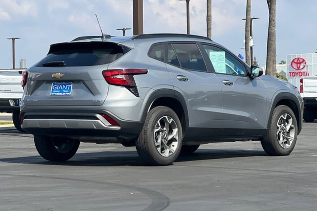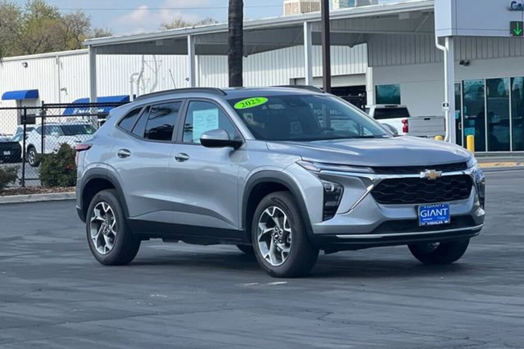 Giant Chevrolet is proud to offer this 2025 Chevrolet Trax LT Sterling Gray Metallic. Clean CARFAX. 1.2L I3 DI Turbocharged DOHC 12V LEV3-ULEV70 137hp 60 pt Inspection, Low Miles, Extra Clean!, One Owner, Recent Oil Change, Well equipped with 2-Way Adjustable Front Head Restraints, Well equipped with 3.50 Final Drive Axle Ratio, Well equipped with 4-Way Manual Front Passenger Seat Adjuster, Well equipped with 4-Wheel Disc Brakes, Well equipped with 6 Speakers, Well equipped with 6-Speaker Audio System Feature, Well equipped with 6-Way Manual Driver Seat Adjuster, Well equipped with ABS brakes, Well equipped with Air Conditioning, Well equipped with Alloy wheels, Well equipped with AM/FM radio: SiriusXM, Well equipped with Auto High-beam Headlights, Well equipped with Automatic temperature control, Well equipped with Brake assist, Well equipped with Bumpers: body-color, Well equipped with Cloth/Evotex Seat Trim, Well equipped with Compass, Well equipped with Delay-off headlights, Well equipped with Driver door bin, Well equipped with Driver vanity mirror, Well equipped with Dual front impact airbags, Well equipped with Dual front side impact airbags, Well equipped with Electronic Stability Control, Well equipped with Emergency communication system: OnStar One Essentials, Well equipped with Exterior Parking Camera Rear, Well equipped with Front anti-roll bar, Well equipped with Front Bucket Seats, Well equipped with Front Center Armrest, Well equipped with Front Doors Keyless Open, Well equipped with Front reading lights, Well equipped with Front wheel independent suspension, Well equipped with Fully automatic headlights, Well equipped with Heated Driver and Front Passenger Seats, Well equipped with Heated Power-Adjustable Outside Mirrors, Well equipped with Heated Steering Wheel, Well equipped with Illuminated entry, Well equipped with License Plate Front Mounting Package, Well equipped with Low tire pressure warning, Well equipped with LT Convenience Package, Well equipped with Occupant sensing airbag, Well equipped with Outside temperature display, Well equipped with Overhead airbag, Well equipped with Overhead console, Well equipped with Panic alarm, Well equipped with Passenger door bin, Well equipped with Passenger vanity mirror, Well equipped with Power door mirrors, Well equipped with Power steering, Well equipped with Power windows, Well equipped with Preferred Equipment Group 1LT, Well equipped with Premium audio system: Chevrolet Infotainment 3, Well equipped with Radio data system, Well equipped with Radio: AM/FM Stereo Audio System, Well equipped with Rear window defroster, Well equipped with Rear window wiper, Well equipped with Remote keyless entry, Well equipped with Security system, Well equipped with SiriusXM Trial Subscription, Well equipped with Speed control, Well equipped with Split folding rear seat, Well equipped with Spoiler, Well equipped with Steering wheel mounted audio controls, Well equipped with Tachometer, Well equipped with Telescoping steering wheel, Well equipped with Tilt steering wheel, Well equipped with Traction control, Well equipped with Trip computer, Well equipped with Variably intermittent wipers, Well equipped with Wheels: 17 Inch Gray-Painted Machined Aluminum Alloy, Well equipped with Wrapped Steering Wheel. 28/32 City/Highway MPGAwards:* Car and Driver 10 BestCar and Driver, January 2017. Save Today at Giant Chevrolet Cadillac ! The Name Says It All! Family owned and operated for 55 years! www.giantautomotive.com Excellent selection of Used Vehicles, Financing Options, serving Visalia, Tulare, Hanford, Dinuba, Fresno, Bakersfield, Selma, Clovis, Madera, Porterville, Delano, Tulare County, Kings County, Fresno County, Kern County, San Luis Obispo County.