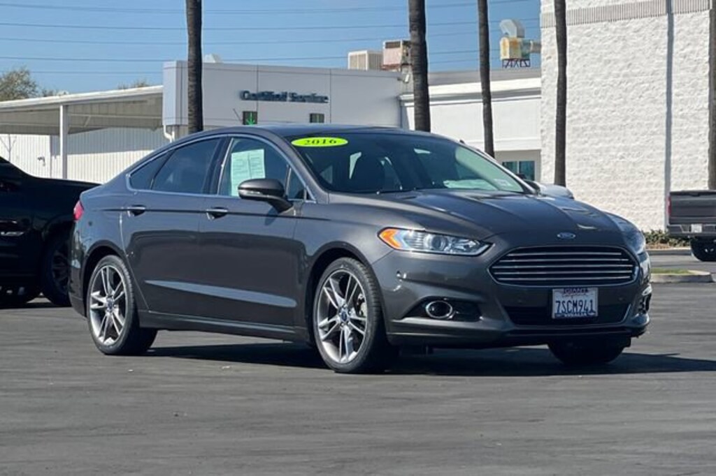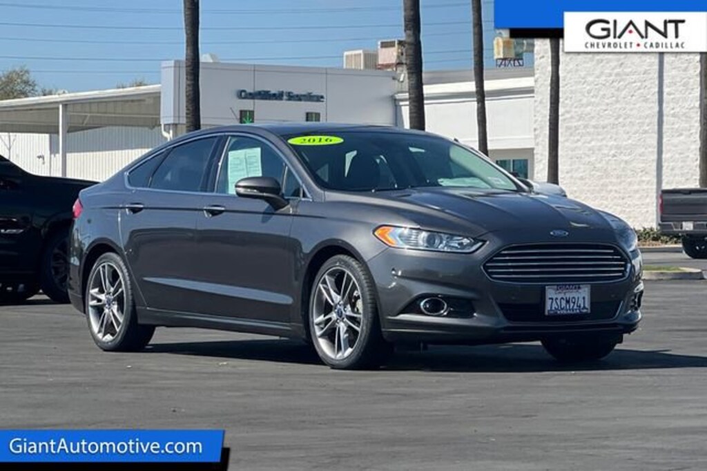 Giant Chevrolet is proud to offer this 2016 Ford Fusion Titanium Magnetic. EcoBoost 2.0L I4 GTDi DOHC Turbocharged VCT 60 pt Inspection, Low Miles, Extra Clean!, One Owner, Non Smoker!, Sunroof / Moonroof / Roof / Panoramic, Recent Oil Change, Well equipped with 12 Speakers, Well equipped with 18 Premium Polished Aluminum Wheels, Well equipped with 4-Wheel Disc Brakes, Well equipped with ABS brakes, Well equipped with Air Conditioning, Well equipped with Alloy wheels, Well equipped with AM/FM radio: SiriusXM, Well equipped with Auto-dimming door mirrors, Well equipped with Auto-dimming Rear-View mirror, Well equipped with Automatic temperature control, Well equipped with Brake assist, Well equipped with Bumpers: body-color, Well equipped with CD player, Well equipped with Compass, Well equipped with Delay-off headlights, Well equipped with Driver door bin, Well equipped with Driver vanity mirror, Well equipped with Dual front impact airbags, Well equipped with Dual front side impact airbags, Well equipped with Electronic Stability Control, Well equipped with Emergency communication system: 911 Assist, Well equipped with Exterior Parking Camera Rear, Well equipped with Four wheel independent suspension, Well equipped with Front anti-roll bar, Well equipped with Front Bucket Seats, Well equipped with Front Center Armrest, Well equipped with Front dual zone A/C, Well equipped with Front fog lights, Well equipped with Front reading lights, Well equipped with Fully automatic headlights, Well equipped with Heated door mirrors, Well equipped with Heated front seats, Well equipped with Illuminated entry, Well equipped with Knee airbag, Well equipped with Leather Shift Knob, Well equipped with Leather-Trimmed Heated Sport Bucket Seats, Well equipped with Low tire pressure warning, Well equipped with Memory seat, Well equipped with Occupant sensing airbag, Well equipped with Outside temperature display, Well equipped with Overhead airbag, Well equipped with Overhead console, Well equipped with Panic alarm, Well equipped with Passenger door bin, Well equipped with Passenger vanity mirror, Well equipped with Power door mirrors, Well equipped with Power driver seat, Well equipped with Power passenger seat, Well equipped with Power steering, Well equipped with Power windows, Well equipped with Radio data system, Well equipped with Radio: AM/FM Stereo/MP3/Single-CD, Well equipped with Rear anti-roll bar, Well equipped with Rear Parking Sensors, Well equipped with Rear reading lights, Well equipped with Rear seat center armrest, Well equipped with Rear window defroster, Well equipped with Remote keyless entry, Well equipped with Security system, Well equipped with SiriusXM Radio, Well equipped with Speed control, Well equipped with Speed-sensing steering, Well equipped with Speed-Sensitive Wipers, Well equipped with Split folding rear seat, Well equipped with Spoiler, Well equipped with Steering wheel mounted audio controls, Well equipped with SYNC w/MyFord Touch, Well equipped with Tachometer, Well equipped with Telescoping steering wheel, Well equipped with Tilt steering wheel, Well equipped with Traction control, Well equipped with Trip computer, Well equipped with Turn signal indicator mirrors, Well equipped with Variably intermittent wipers. Odometer is 46469 miles below market average! 22/33 City/Highway MPGAwards:* 2016 KBB.com 10 Best Sedans Under $25,000 * 2016 KBB.com Brand Image Awards Save Today at Giant Chevrolet Cadillac ! The Name Says It All! Family owned and operated for 55 years! www.giantautomotive.com Excellent selection of Used Vehicles, Financing Options, serving Visalia, Tulare, Hanford, Dinuba, Fresno, Bakersfield, Selma, Clovis, Madera, Porterville, Delano, Tulare County, Kings County, Fresno County, Kern County, San Luis Obispo County.