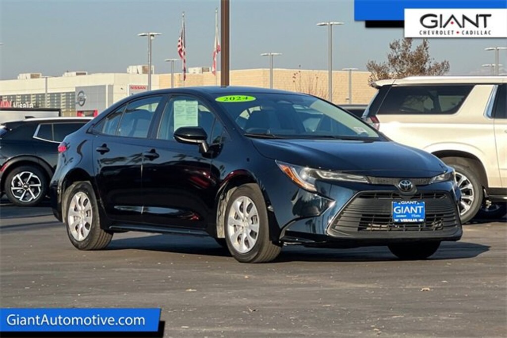 Giant Chevrolet is proud to offer this 2024 Toyota Corolla LE Black. 2.0L I4 DOHC 16V 60 pt Inspection, Low Miles, Extra Clean!, One Owner, Recent Oil Change, Well equipped with 16 Steel Wheels w/Covers, Well equipped with 4-Wheel Disc Brakes, Well equipped with 6 Speakers, Well equipped with ABS brakes, Well equipped with Air Conditioning, Well equipped with AM/FM radio: SiriusXM, Well equipped with Auto High-beam Headlights, Well equipped with Automatic temperature control, Well equipped with Brake assist, Well equipped with Bumpers: body-color, Well equipped with Delay-off headlights, Well equipped with Driver door bin, Well equipped with Driver vanity mirror, Well equipped with Dual front impact airbags, Well equipped with Dual front side impact airbags, Well equipped with Electronic Stability Control, Well equipped with Emergency communication system: Safety Connect (up to 10-year trial subscription), Well equipped with Exterior Parking Camera Rear, Well equipped with Fabric Seat Trim, Well equipped with Front anti-roll bar, Well equipped with Front Bucket Seats, Well equipped with Front Center Armrest, Well equipped with Front reading lights, Well equipped with Front wheel independent suspension, Well equipped with Fully automatic headlights, Well equipped with Illuminated entry, Well equipped with Knee airbag, Well equipped with Low tire pressure warning, Well equipped with Occupant sensing airbag, Well equipped with Outside temperature display, Well equipped with Overhead airbag, Well equipped with Panic alarm, Well equipped with Passenger door bin, Well equipped with Passenger vanity mirror, Well equipped with Power door mirrors, Well equipped with Power steering, Well equipped with Power windows, Well equipped with Radio data system, Well equipped with Radio: 8 Toyota Audio Multimedia, Well equipped with Rear anti-roll bar, Well equipped with Rear seat center armrest, Well equipped with Rear side impact airbag, Well equipped with Rear window defroster, Well equipped with Remote keyless entry, Well equipped with Speed control, Well equipped with Split folding rear seat, Well equipped with Steering wheel mounted audio controls, Well equipped with Tachometer, Well equipped with Telescoping steering wheel, Well equipped with Tilt steering wheel, Well equipped with Traction control, Well equipped with Trip computer. 32/41 City/Highway MPG